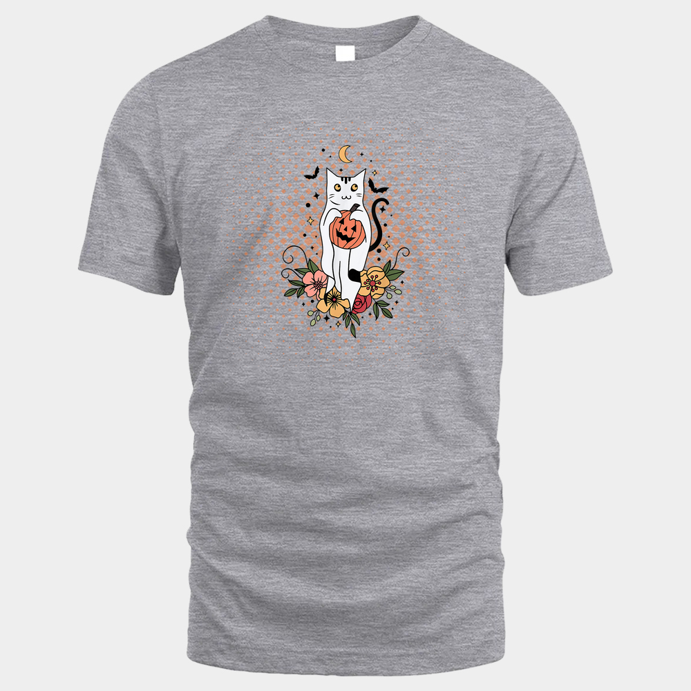 Vintage Floral Halloween Cat Ghost Unisex Tshirt – Sport Grey